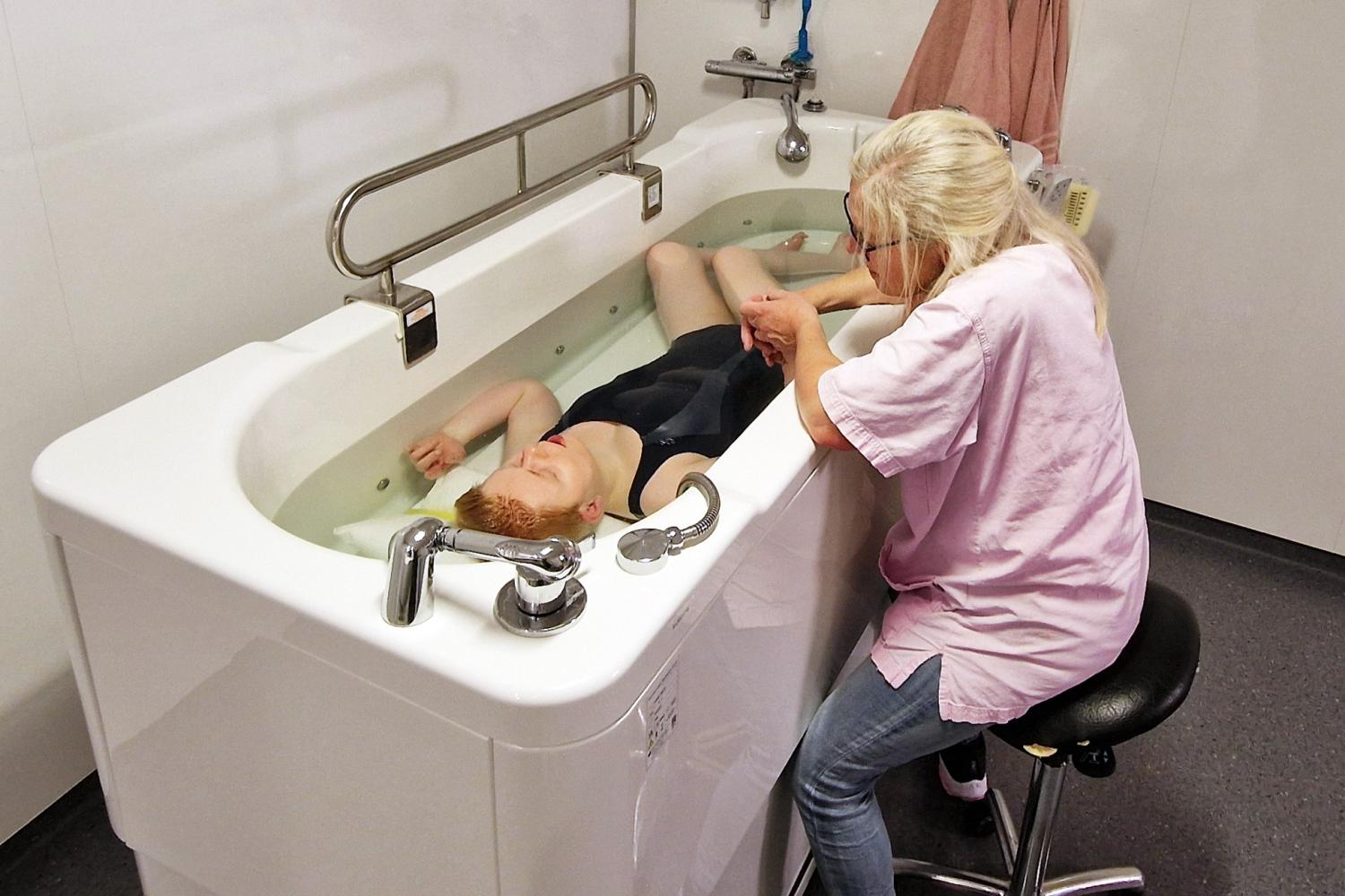 – Sandra får masse taktil informasjon gjennom badingen. Det varme vannet gjør godt for kroppen hennes, og vi ser at hun slapper helt av, sier Astrid.
